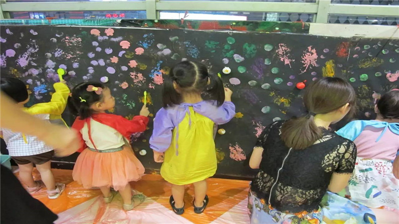 扎染完成后,需要等待10分钟才能打开,在这段时候,小盆友把背景制作成一幅大型的星空油画。